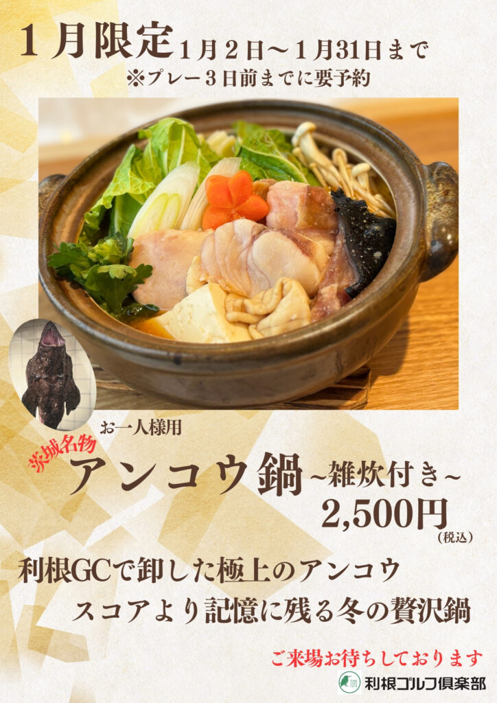 - 冬季特別【1月限定】冬の味覚「冬の味覚 あんこう鍋」登場!ご予約受付中♪