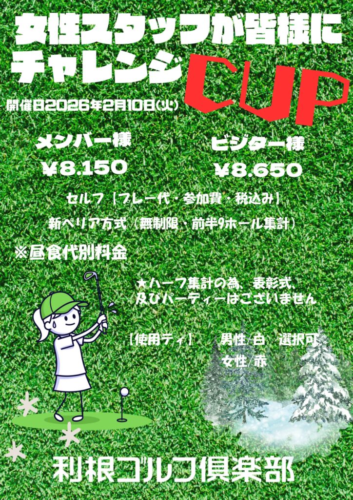 2月10日(火) 女性スタッフが皆様にチャレンジCUP のお知らせ