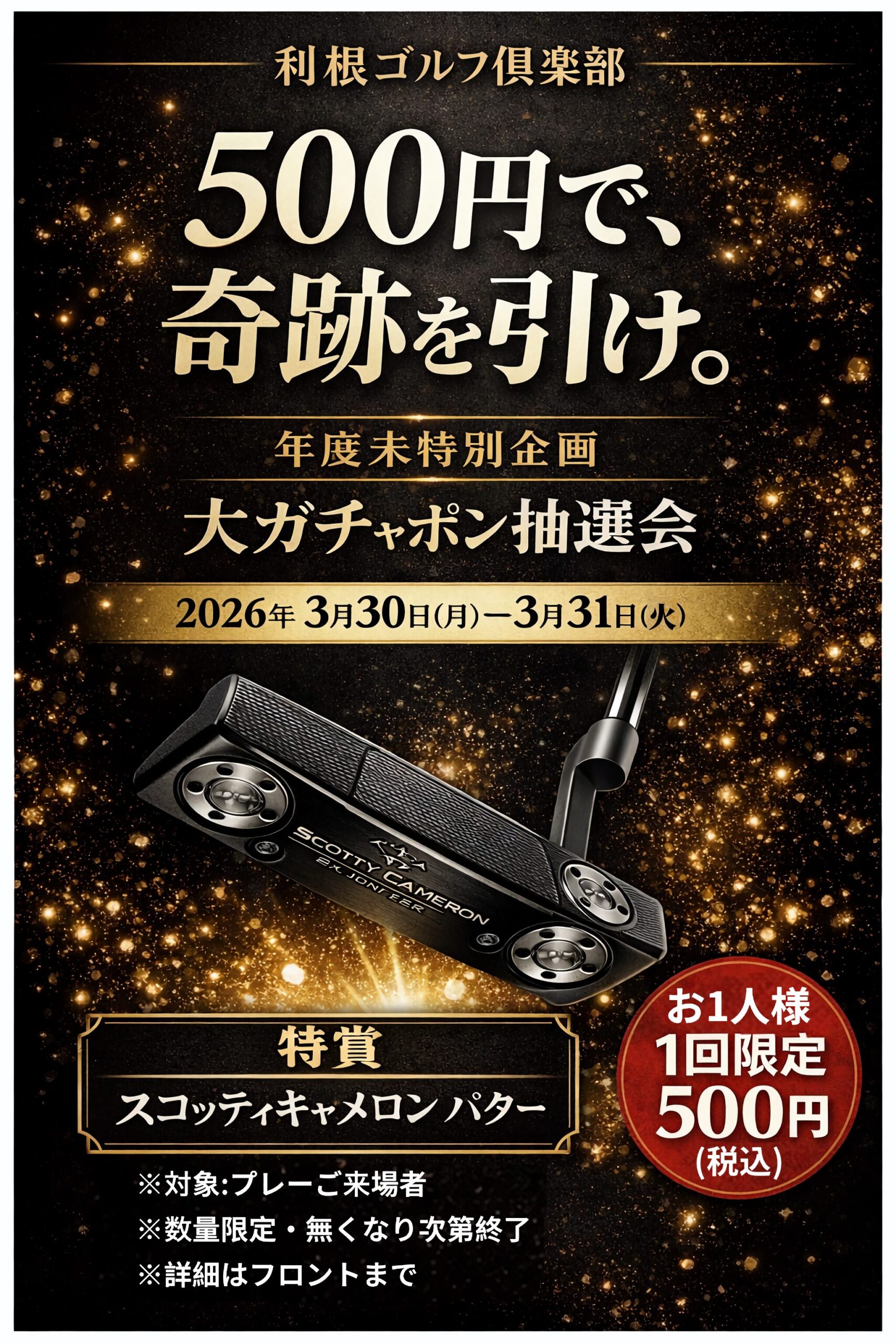 2026年3月30~31日【年度末特別企画 大ガチャポン抽選会】開催♪